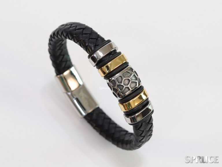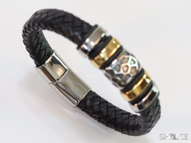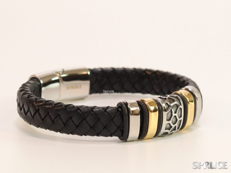 Interspersed along the leather strap are silver and gold accessories, creating a captivating contrast, contributing to the bracelet's unique character. The silver and gold detailing not only enhances the visual appeal but also lends a luxurious touch to the overall aesthetic.