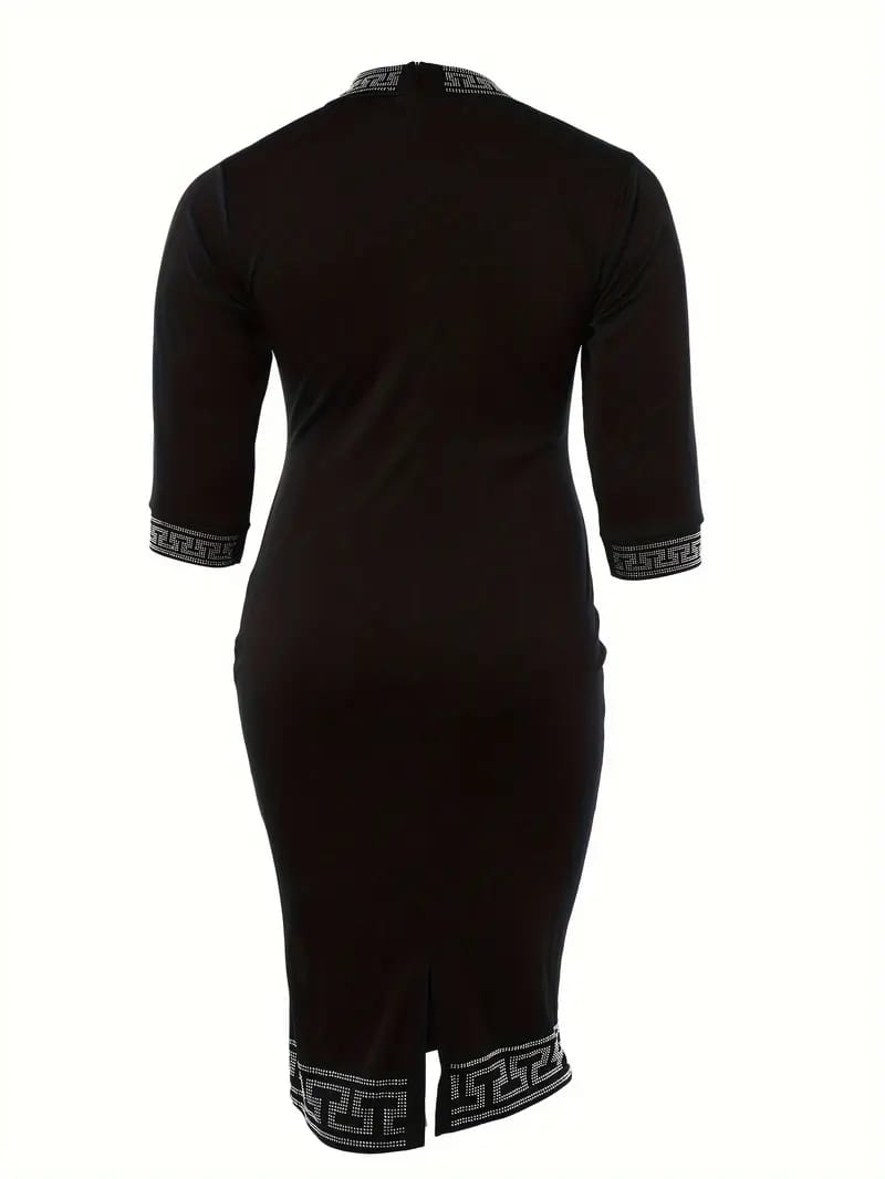 Black long sleeved dress with stones design on edges