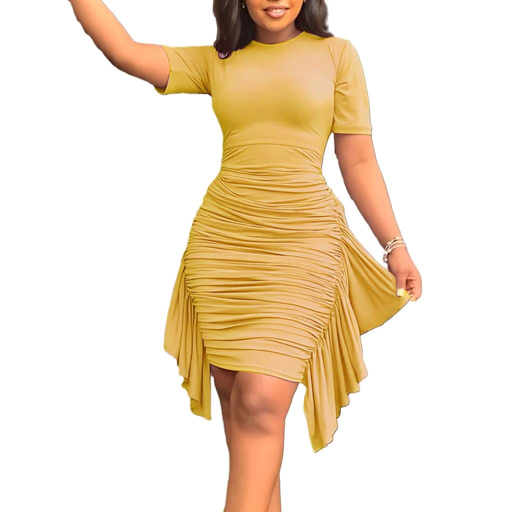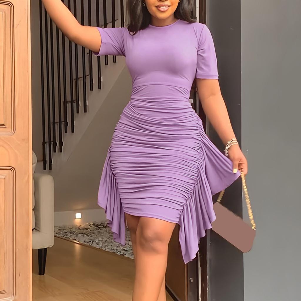 The side drapes bring a sense of movement and dynamism to the ensemble, allowing the dress to flow elegantly as you walk or dance. Whether you're attending a special event or looking to make a stylish statement, this dress with side drapes at the hip effortlessly combines fashion-forward design with timeless charm.