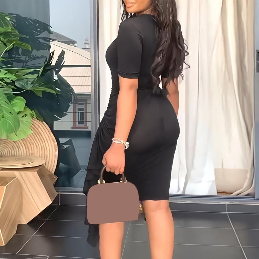 Pair it with your favourite heels and accessories for a polished look that showcases your individual style. With its sophisticated silhouette and unique detailing, this dress is a versatile and chic choice that will undoubtedly turn heads wherever you go.