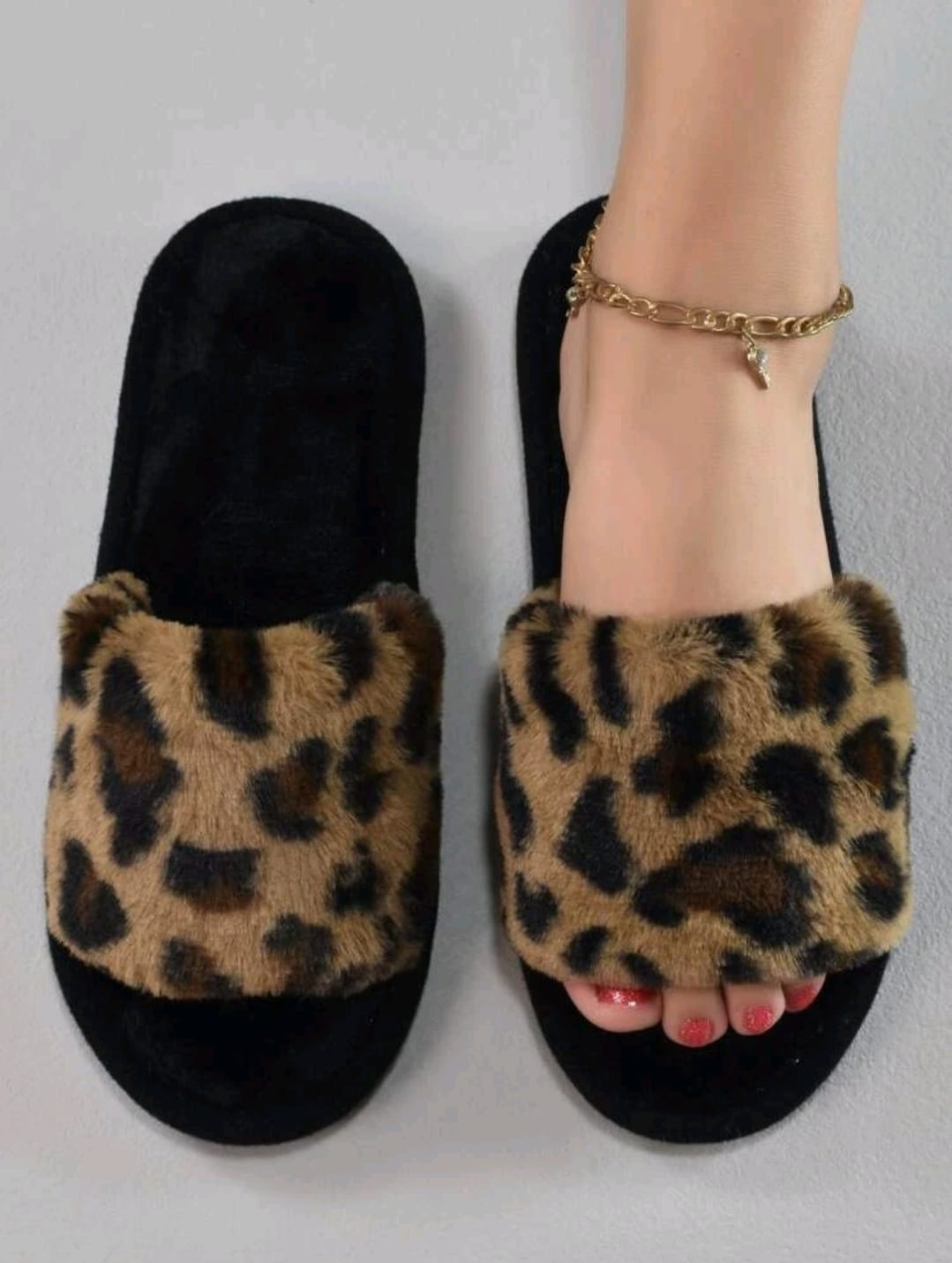 Designed for both comfort and style, these slippers feature a plush construction that pampers your feet while making a bold fashion statement. The leopard pattern adds a playful and on-trend touch, transforming your relaxation time into a chic affair. Slip into these fuzzy slippers and let your feet experience the perfect blend of comfort and fashion, making every step a delight.