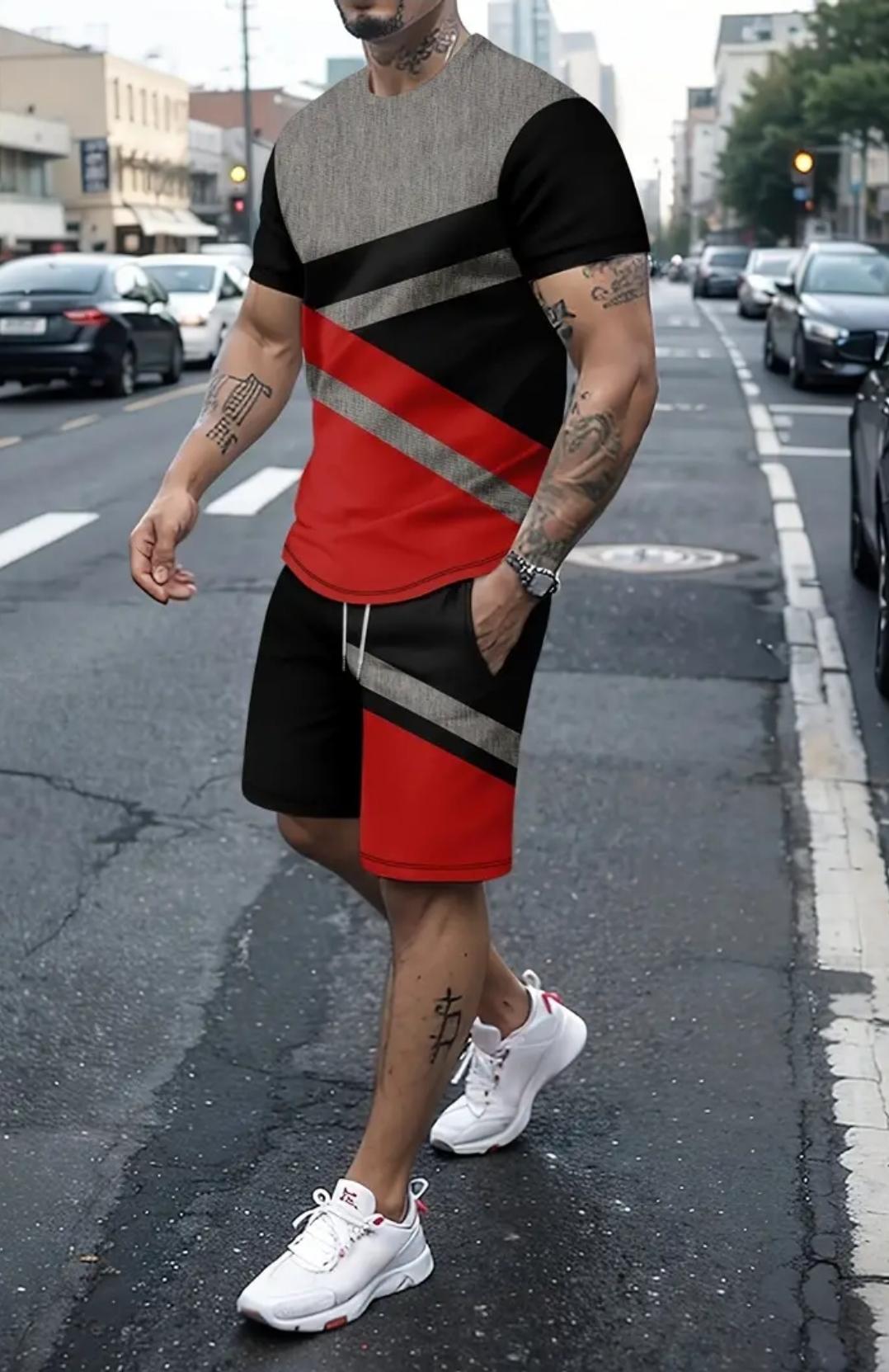 Men's casual Crew Neck Graphic T-shirts Set with stylish Print,Confort Fit suit for summer size M