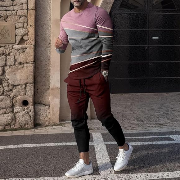 Perfect for both leisure and active wear, this men's sweatshirt and sweatpants set effortlessly combines comfort with contemporary style. The grey, wine, and pink colour scheme, along with the strategically placed pink stripes, ensures that this ensemble is not only comfortable but also on-trend, making it a versatile choice for various casual occasions.