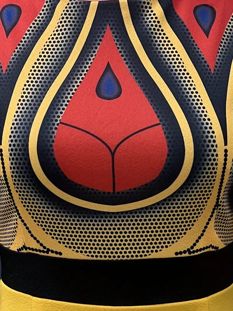 The upper section of the dress showcases a variety of patterns, which could range from florals and stripes to abstract designs or geometric shapes. This intricate detailing draws attention to the upper body, adding visual interest and a touch of sophistication to the overall look. The choice of patterns allows for personal expression, and it can be tailored to suit different occasions or individual style preferences.