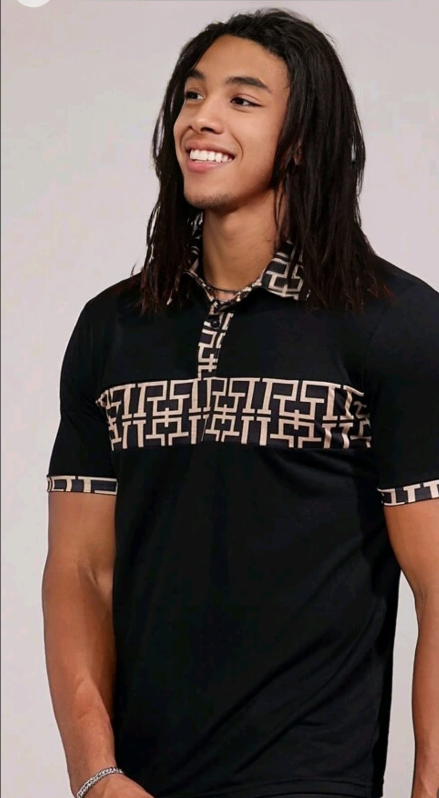 —a stylish brown designed collar. The classic silhouette of the polo shirt meets contemporary flair with the intricately patterned brown collar, adding a unique and eye-catching element to your ensemble. Perfect for both laid-back outings and smart-casual occasions, this shirt effortlessly blends comfort and style. Pair it with neutral bottoms for a polished look that exudes individuality and showcases your fashion-forward sensibility. Embrace the versatility of this wardrobe essential, where classic meets contemporary in a perfect fusion of comfort and sophistication.